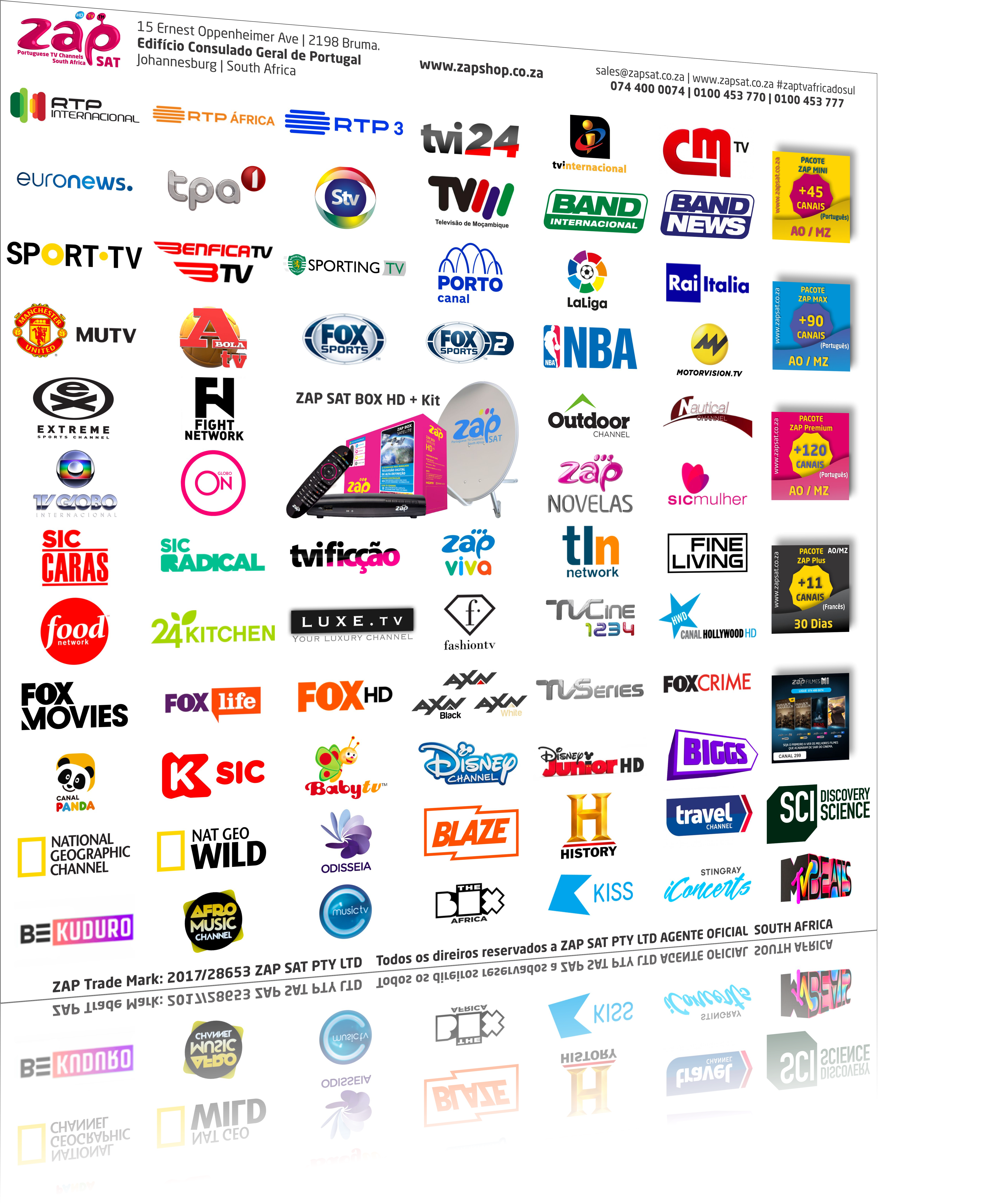A distribuição e uso da marca pertence a ZAP SAT PTY LTD sob o Registo TM N.2017/28653, sendo proibido a utilização por terceiros não autorizados.
